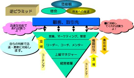 ノードストロームでは、有名な逆ピラミッド組織により、従業員を支援する態勢が全社的に整っています。この企業風土そのものが、メンタリング風土なのです。