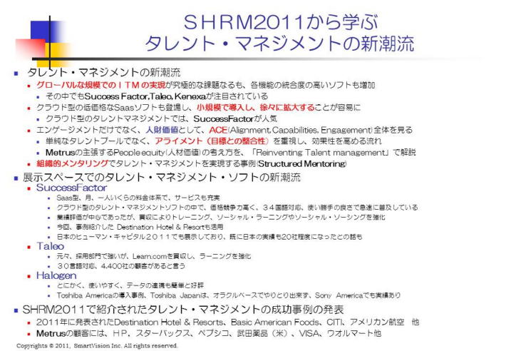 人材マネジメント協会SHRM2011年次総会の報告書の中から、一部抜粋しました。