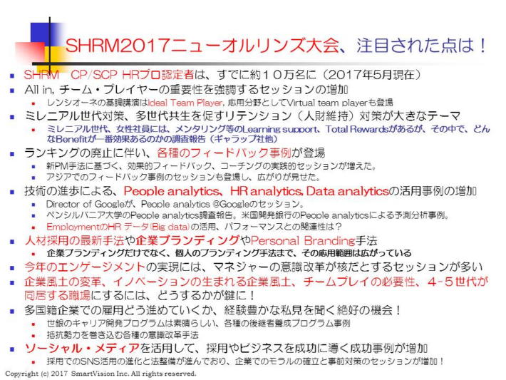 この「SHRM2017ニュー・オルリンズ大会の速報」は、ほんの一部の情報です。
