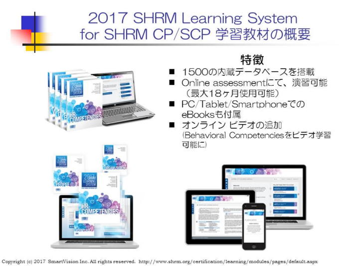このうち、日本人では、2016年7月に最初の合格者が誕生、2017年2月にも、米国駐在の方が取得した。 このHRプロ認定を取得するための教材として、SHRM Learning Systemがあります。2015年に初版が発売されて以来、昨年度は2016版に、今年は、2017版に改訂された。 その大きな違いは、Online Assessmentが大きく進化している点にある。 2015年では、1000問だったものが、2016年には、1500問に拡大した。 その増加は、Situational Judgement問(SJ問)の数が大幅に増えた点である。 従来は、SJ問では、PreferredとAcceptableの2つのレベルがあり、Acceptableにも多少の点数を与えていたものが、2017版からは、正解(Correct)は、一つだけになり、設問文も変更になった。 一部に紛らわしいとの意見があったこともあり、これを修正したとのこと。 また、CP/SCP共に、制限時間が240分、設問数が160問になった。 時間が少し長くなり、設問数も減ったので、易しくなったと思った方もいるかもしれないが、現実はSJ問の1テーマの設問数が減り、1−3問になったこともあり、真面目に本文を読んでいると、4時間でも不足する人が多い。 従い、個人で学習しているだけでは、全問回答が難しいこともあり、効率的で、要領のよい解答法、勉強法を習得する必要がある。 CP/SCP HRプロ認定では、人材マネジメント関連の基本的知識だけでなく、HRプロとしてのコンピテンシーを理解し、積極的、戦略的に問題解決、意識改革に取り組むことが求められる。ここが他のスキル認定とは全く異なる点だ。 多くのコーチ認定では、経営学の勉強を特別する必要はないと説明している所が多いが、SHRM CP/SCP HRプロ認定では、人材マネジメントの最新知識を必要としているだけでなく、HRプロとしての基本的心構えとしてのSHRMコンピテンシーを理解し、戦略的に挑戦する意欲のある人材をHRプロとして認定し、企業内での課題の多い意識改革の先頭に立ってもらおうという期待が込められている。 このHRプロとして求められている知識とやる気を備えたHRプロが米国には、10万人以上いるということで、米国企業に必要な企業内意識改革や企業風土改革も今までより、進むのではないかと期待されている。 これらのHRプロをリードするSHRMのリーダー層にも、当然のことながら、SHRM SCP認定を取得することが求められ、新しく就任するSHRM CEOやChairを始めとした幹部にも、SHRM SCP取得者が続々と登場した。 これからの米国企業のCHRO, VP of HR, Director of HRには、SHRM SCP取得が当然のことになろう。 SHRMコンピテンシーに興味をお持ちの方、SHRM CP/SCP認定に挑戦してみたい方は、SHRMコンピテンシー研究会に参加して、勉強仲間をつくり、互いに学ぶ関係を構築することで、その第一歩が開らかれます。 SHRMコンピテンシー研究会に参加希望の方は、こちら |
