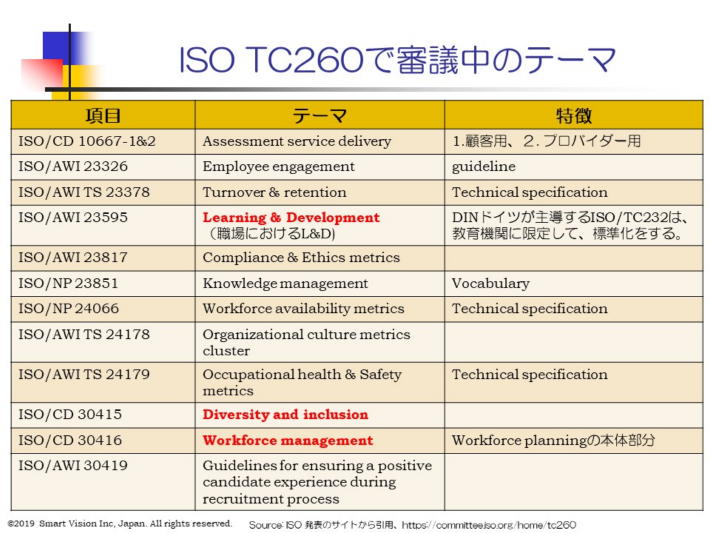 2011年、ISO TC260委員会が設置され、人材マネジメントに関する標準化の議論が始まった。その間のいきさつは、こちらのサイトで、すでに解説したので、ご覧ください。