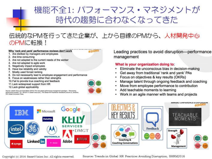 2013年にSHRM/ANSI版パフォーマンス・マネジメント標準が制定され、アドビ、マイクロソフト、更には、80年以上矯正的ランク付を続けてきたあのGE社も、ランクづけ評価を是正し、SHRM/ANSI グローバル標準に準拠した最新版パフォーマンス・マネジメントに切り替えました。