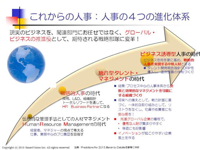 従来、タレント・マネジメントは、一部の潜在能力者だけに実施するものと考えがちでしたが、近年は、この垣根もなくなり、社員全員に適用して、潜在能力の発掘に力をいれる傾向が顕著になっています。 |