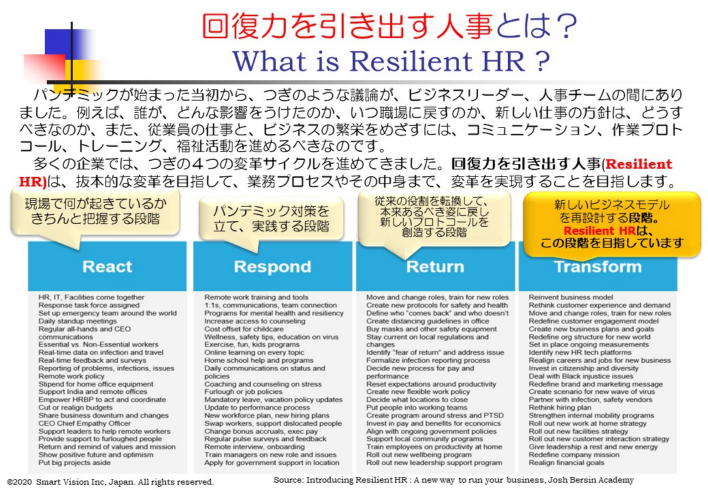 コロナ禍による世界的なパンデミックの影響を受けて、回復力を引き出す人事(Resilient HR)がが必要だと言われる時代になりました。