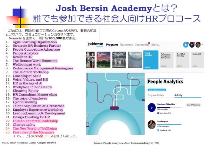 (6)Josh Bersin Academyが進める最新HRM動向を日本で最初に取り入れ、これにもとづき、各種の普及活動を推進しています。