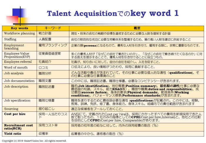 それとも、自分のやりたい事が出来るかどうか、あるいは、自分の希望するキャリアを実現できるのか、どうかですか? 若い優秀なグローバル人材が期待しているのは、有名企業に就職できるとか、高い給与を得られるのかより、むしろ、自分が目指しているEmployee Experience(EX)が体験できるのかにかかっていると言えます。 それでは、これが実現できるかどうかをわかりやすく、楽しく、映像にて、伝えられるかであり、そのために、多機能化したスマホやSNS等の最新技術が大変役に立ちます。 1月のSHRMコンピテンシーでは、優良企業では、グローバル人財を採用するため、どんな採用活動を行い、どんな視点で、選抜しているのかを基本に戻り、考えてみたいと考えています。 国内の採用と違い、グローバル採用では、色々な手法がありますが、その中でどの手法が適しているのかを考えられるようになるためにSHRHコンピテンシーを学ぶことになります。